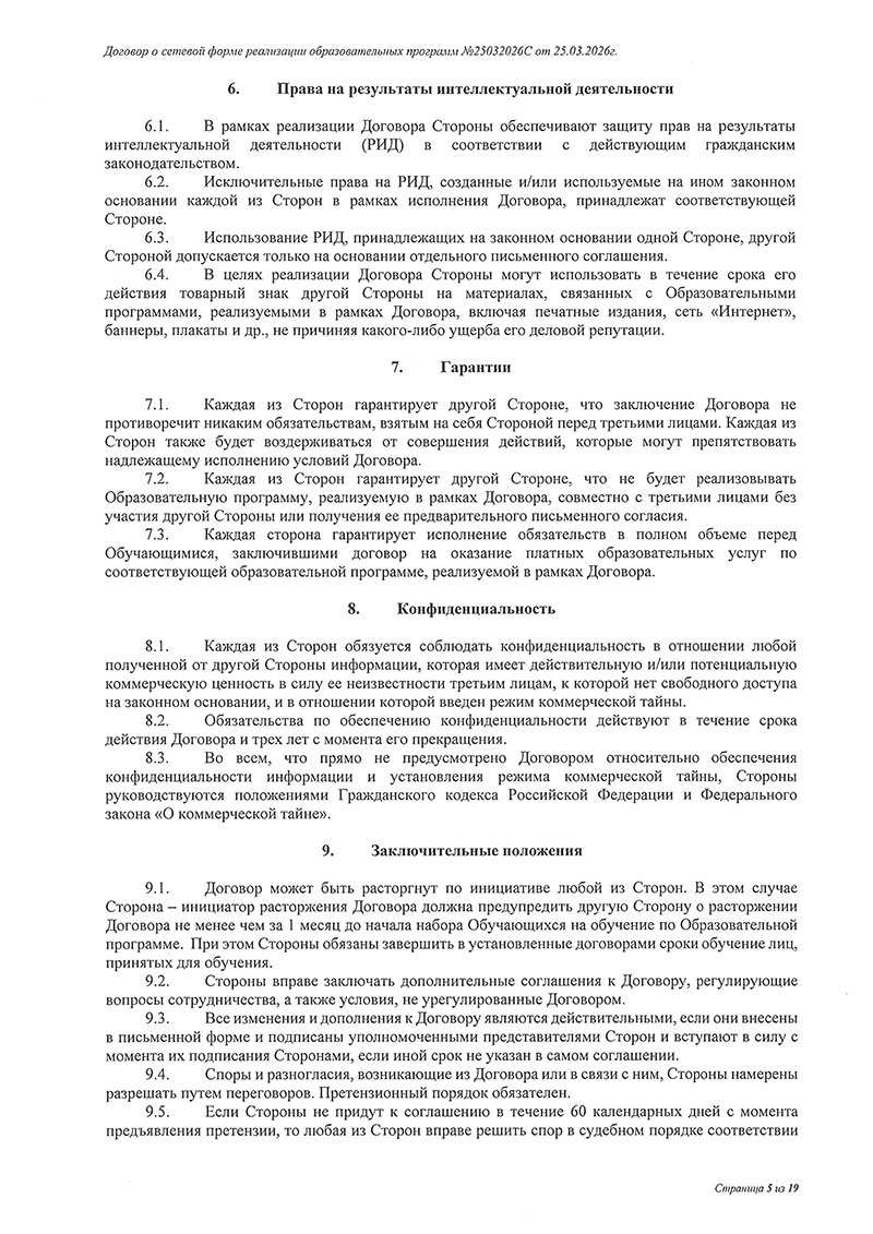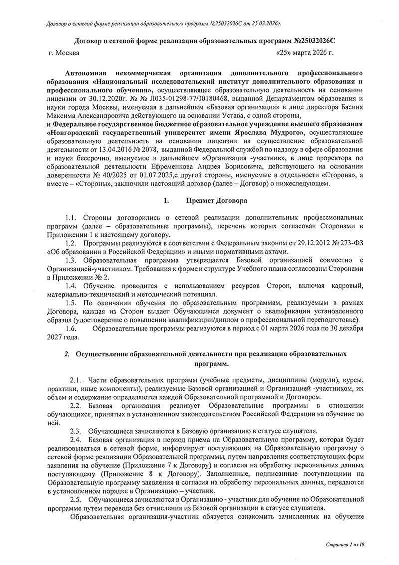 Разрешение на осуществление образовательной деятельности на территории инновационного центра «Сколково» № 061 от 19 января 2026 г.*