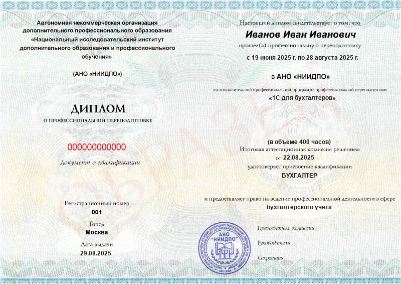 Да, документы оформляются на бланках с защитой от подделок, заполняются на русском языке, в них ставится печать АНО «НИИДПО».