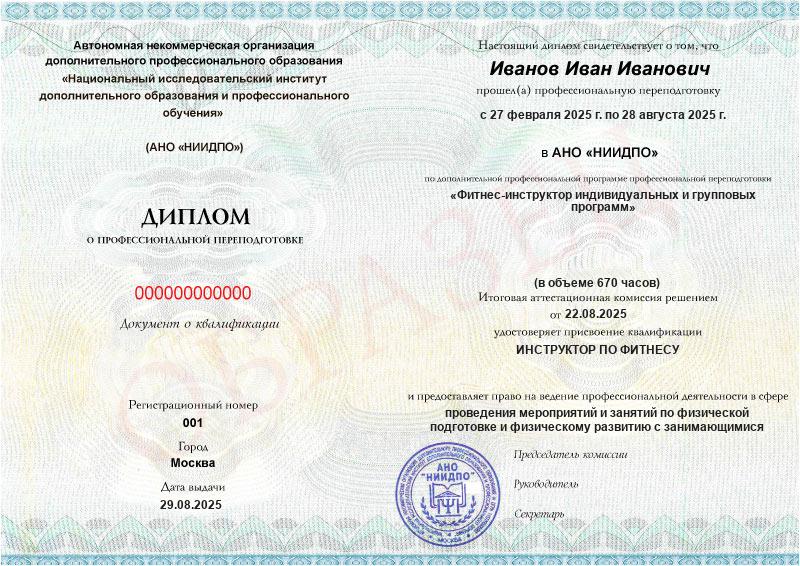 Фитнес-инструктор индивидуальных и групповых программ (670ч)