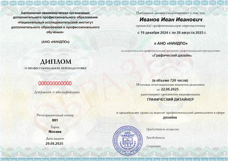 Диплом о профпереподготовке (для программ длительностью от 250 ч.)