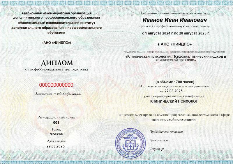 Клиническая психология. Психоаналитический подход в клинической практике (1700ч)