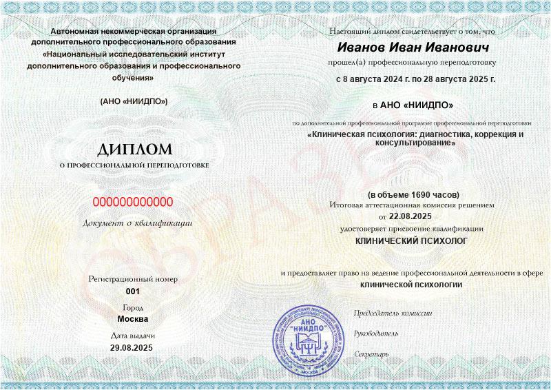 Клиническая психология: диагностика, коррекция и консультирование (1690ч)