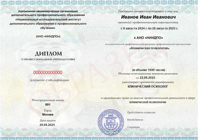 - Диплом московского института с государственной лицензией.