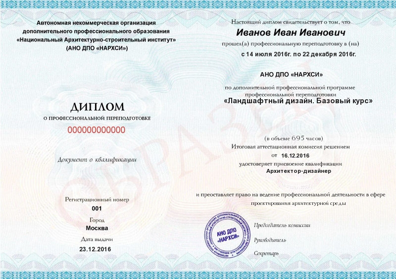 Учебный план программы профессиональной переподготовки «Ландшафтный дизайн. Базовый курс» с присвоением квалификации «Архитектор-дизайнер»
