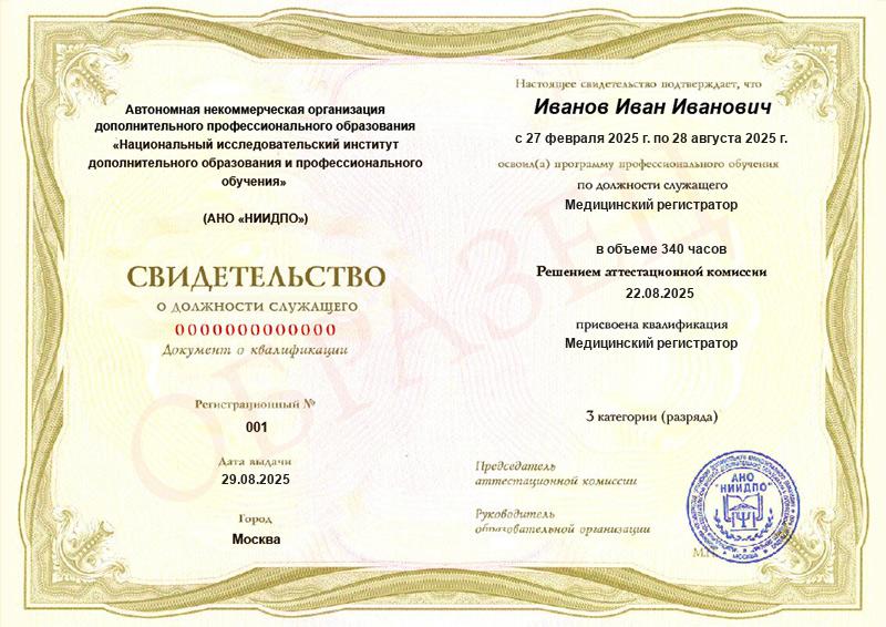 Для работы не требуется специальное медицинское образование, учиться можно без диплома профильного вуза. Достаточно пройти курсы подготовки медрегистраторов или профессиональное обучение. Сделать это дистанционно можно в нашем Институте.