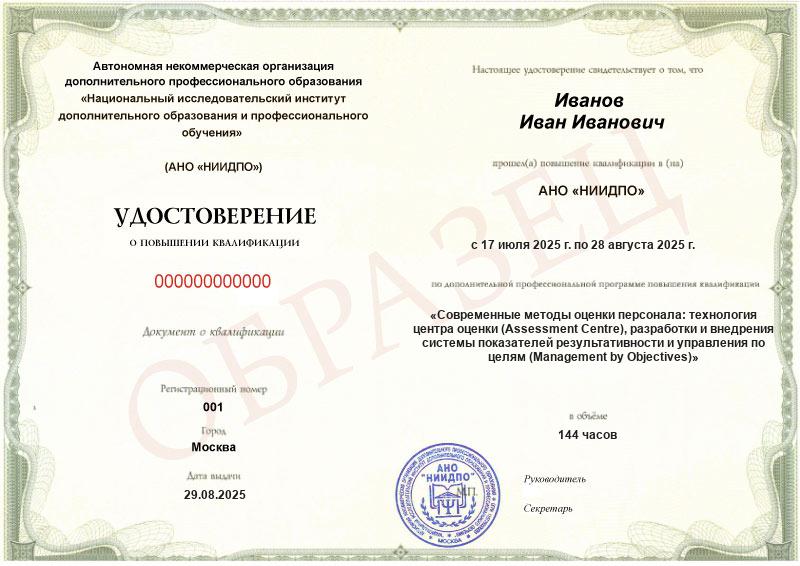 Обзор программы повышения квалификации «Современные методы оценки персонала: технология центра оценки (Assessment Centre), разработки и внедрения системы показателей результативности и управления по целям (Management by Objectives)»