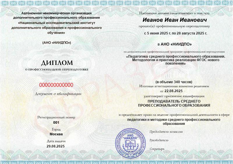Обзор программы профессиональной переподготовки «Педагогика среднего профессионального образования. Методология и практика реализации ФГОС нового поколения» с присвоением квалификации «Преподаватель среднего профессионального образования»