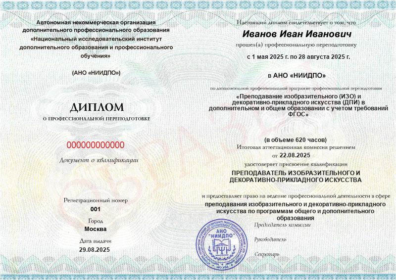 Обзор программы профессиональной переподготовки «Преподавание изобразительного (ИЗО) и декоративно-прикладного искусства (ДПИ) в дополнительном и общем образовании с учетом требований ФГОС» с присвоением квалификации «Преподаватель изобразительного и декоративно-прикладного искусства»
