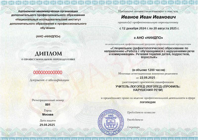 Да, документы оформляются на бланках с защитой от подделок, заполняются на русском языке, в них ставится печать АНО «НИИДПО».