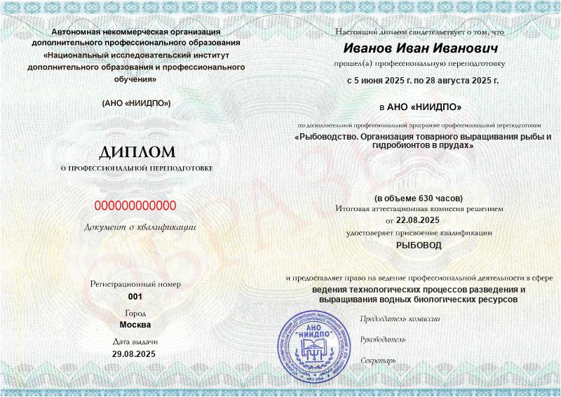 - Квалификация: Рыбовод