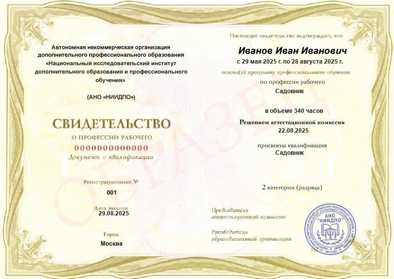 - Квалификация: Садовник