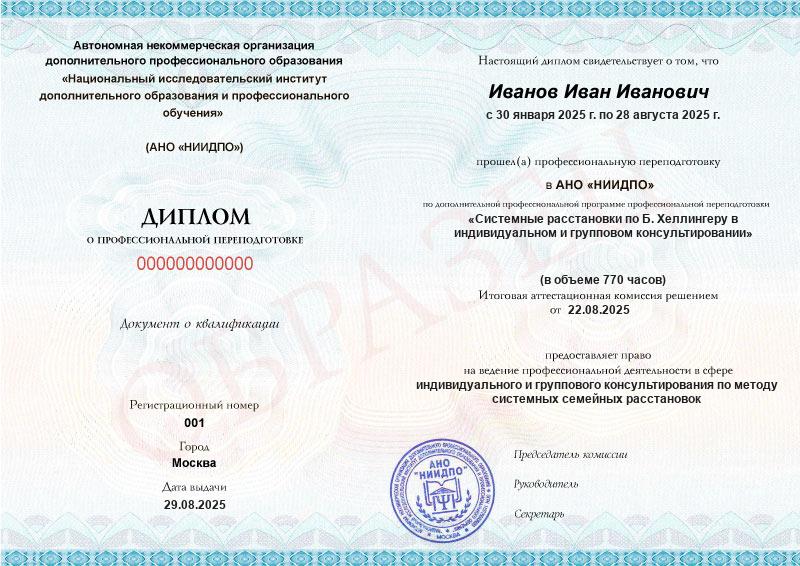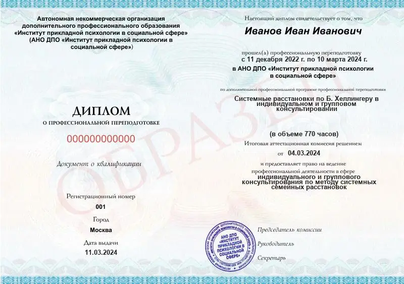 Документ дает право работать в консультировании по методу системных расстановок