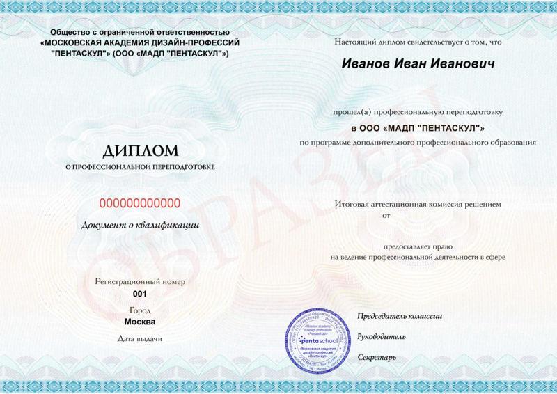 - Диплом о профессиональной переподготовке с правом на ведение профессиональной деятельности