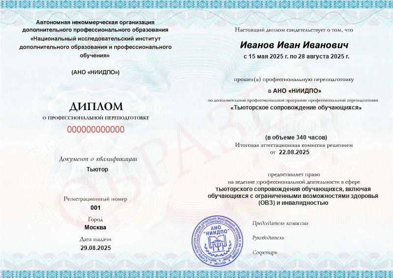 Студент, желающий поступить в АНО «НИИДПО», должен предоставить справку из образовательной организации. Независимо от срока окончания обучения по программе дополнительного образования, диплом о профпереподготовке выдаётся только после предъявления документа о получении среднего профессионального или высшего образования.