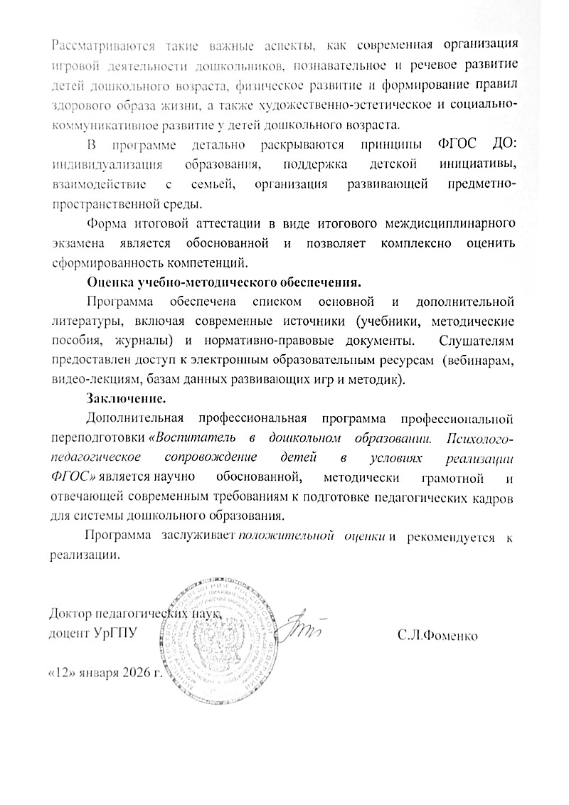 Читайте рецензию доцента ФГАОУ ВО «Уральский государственный педагогический университет», доктора педагогических наук Фоменко С. Л.